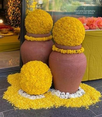 Marigolds radiate warmth and tradition. Roses add romance effortlessly. Mogra and Rajnigandha introduce a fragrance that feels nostalgic and deeply rooted in Indian celebrations.