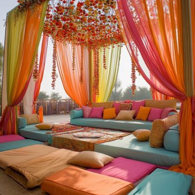 Decor for these events doesn’t need to be grand. Draped dupattas, fresh flowers, cozy seating, and personal details are more than enough. These setups feel warm, unfiltered, and deeply personal.