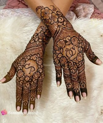 Personalized mehendi designs with the groom’s initials are becoming increasingly popular for engagement ceremonies. The bride can hide the initials within the pattern or place them near the ring finger.