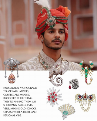 This piece works beautifully with silk turbans and heavily embroidered sherwanis. If the wedding theme is grand or palace-inspired, a brooch is almost a must.