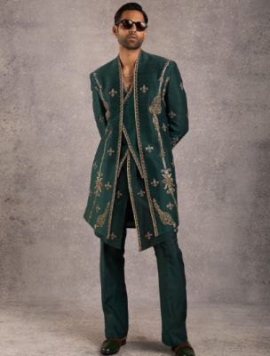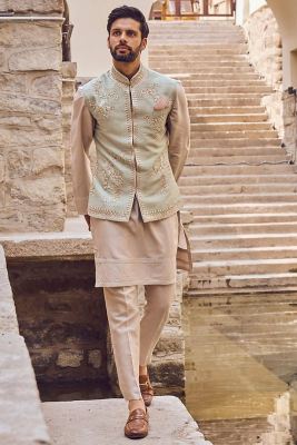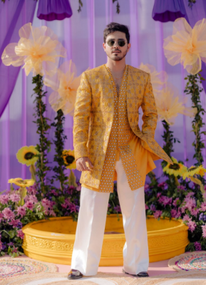 Many grooms now prefer lighter, easier-to-carry outfits that are more versatile across functions. A well-fitted suit or a structured bandhgala can look just as grand while allowing you to move freely and enjoy your big day. Another reason is the influence of curated décor and wedding themes, where outfits are styled to match the overall aesthetic rather than blindly follow tradition.