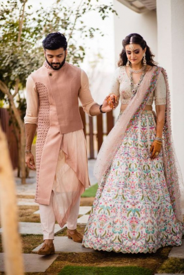 Another important factor is coordination. Your outfit should complement your partner’s look. If the bride is wearing a traditional outfit with rich textures like silk or a bride saree fabric, for example, organza, you can balance it with a lighter fabric and a refined and elegant look rather than something too casual.