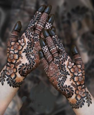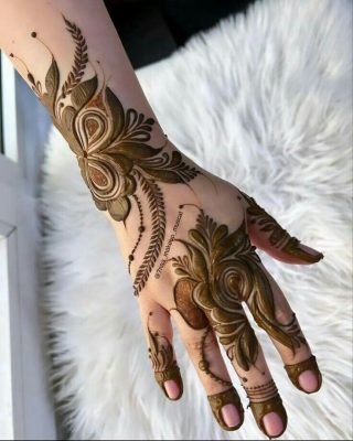 These designs don’t rely on complexity; they rely on elegance. A thin floral trail running across the palm, a tiny mandala in the center, or even minimal finger detailing can look incredibly graceful.